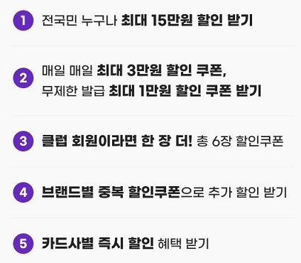 - 7만 원 이상 구매 시 최대 15만 원 할인되는 고액 쿠폰은 총 4회 (6일, 9일, 12일, 15일) 제공