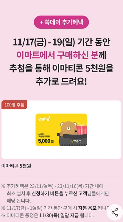 | 쓱데이 awards 스크래치, 럭키드로우 이벤트 경품 안내 (0) | 2023.11.08 |