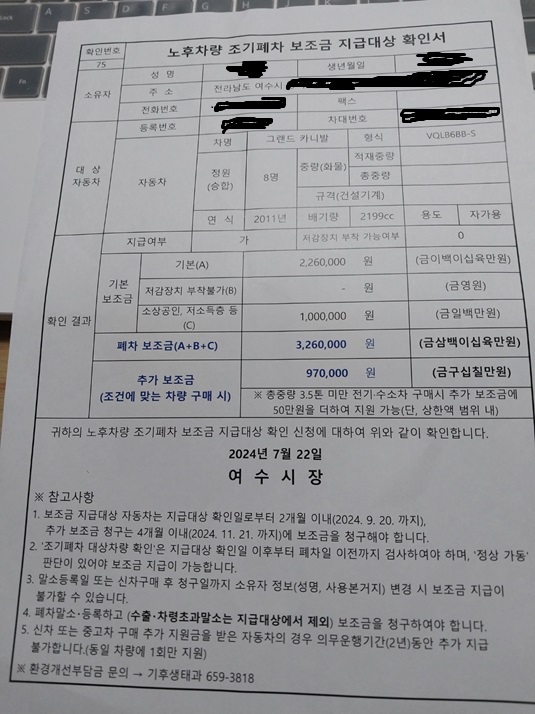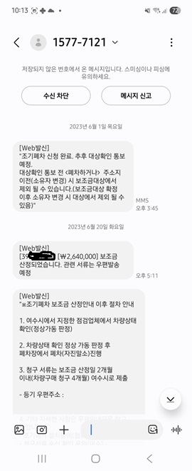 이런... 여수는 폐차 비용이 너무 짭니다.